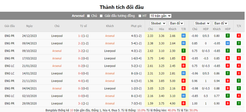Đã có hơn 8,5 quả phạt góc ở 6/7 trận sân khách gần nhất của Liverpool và tại 7 trên 8 trận gần đây của Liverpool. Liverpool đã thực hiện 3,5 quả phạt góc ở 6 trên 7 trận sân khách gần nhất và tại 5 trận gần đây của họ. Đã có dưới 11,5 quả phạt góc ở 9 trên 10 trận gần nhất của Arsenal.
