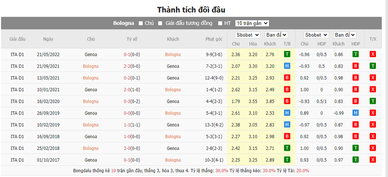 Có hơn 7,5 quả phạt góc được thực hiện trong 5 trận sân nhà gần nhất của Bologna trước Genoa. Đã có dưới 9,5 quả phạt góc ở 16 trên 17 trận sân nhà gần nhất của Bologna ở Serie A.