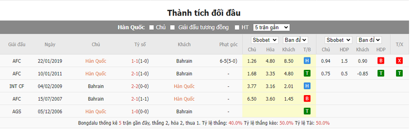Nhận định thành tích đối đầu giữa đôi bên – Hàn Quốc vs Bahrain