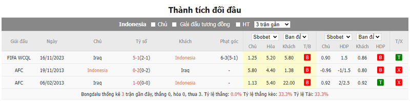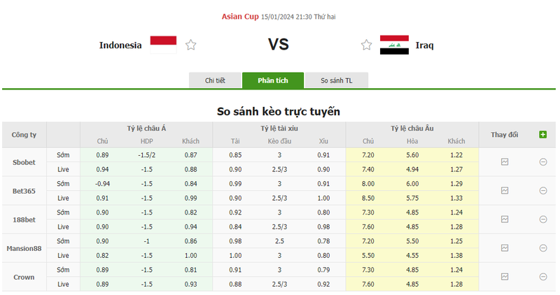 Tỷ lệ kèo trận đấu Indonesia vs Iraq