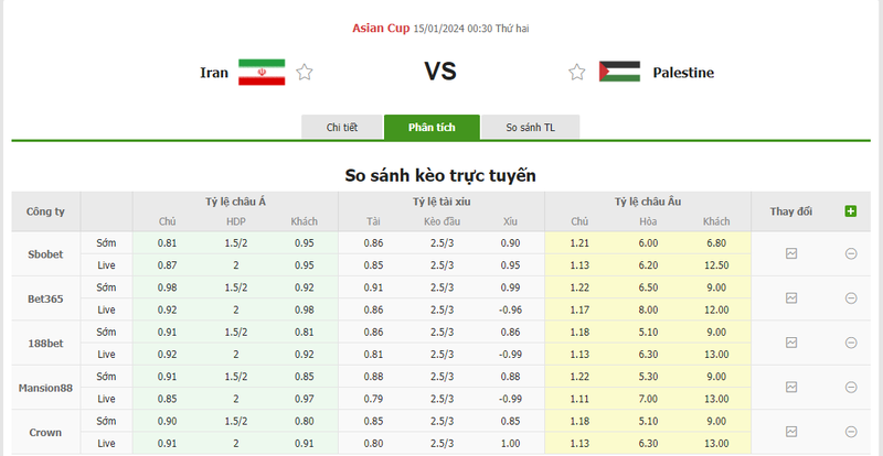Tỷ lệ kèo trận đấu Iran vs Palestine