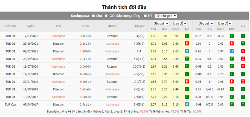 Đã có dưới 11,5 quả phạt góc ở 7 trên 8 trận gần nhất của Kasimpasa Istanbul và tại 7 trên 8 trận Caykur Rizespor gần đây ở Super Lig. Đã có hơn 8,5 quả phạt góc ở mỗi trận trong số 7 trận Kasimpasa Istanbul gần nhất trên sân nhà ở Super Lig.