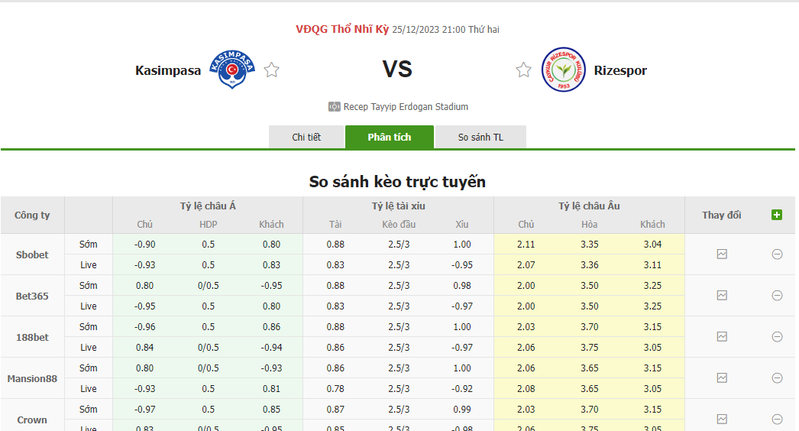 Soi kèo tài xỉu chuẩn chỉ – Kasimpasa vs Rizespor