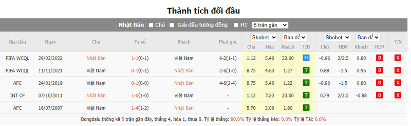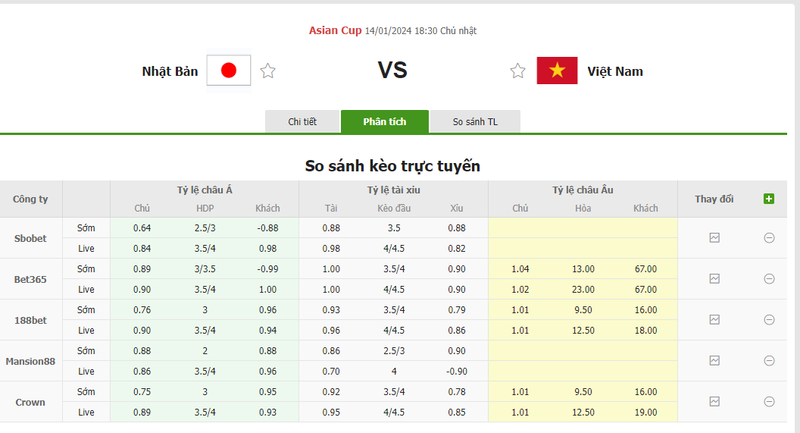 Tỷ lệ kèo trận đấu Nhật Bản vs Việt Nam