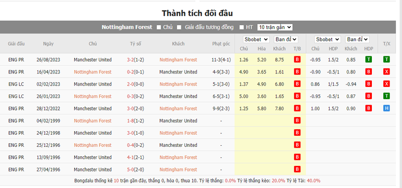 Qủy đỏ có trung bình 12,4 quả phạt góc trong 20 trận gần nhất và Nottingham xuất hiện trung bình 9,8 quả phạt góc tại trận sân nhà gần đây. Nottingham có trung bình có 3,7 quả phạt góc được hưởng và 6,4 quả phạt góc từ đối thủ trong 20 trận gần nhất và trung bình có 11,2 quả phạt góc xuất hiện trong 10 trận sân khách gần đây của Man United.