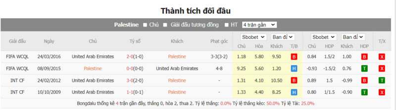 Nhận định thành tích đối đầu giữa đôi bên – Palestine vs UAE