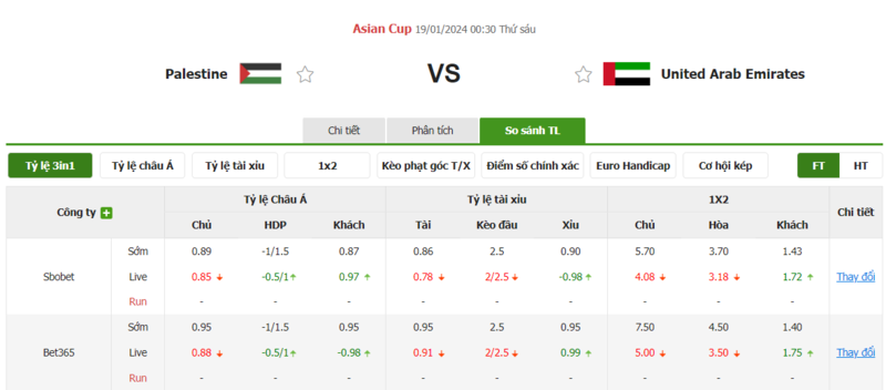 Tỷ lệ kèo trận đấu Palestine vs UAE