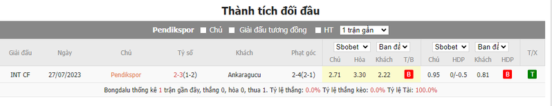 Nhận định thành tích đối đầu giữa đôi bên – Pendikspor vs Ankaragucu