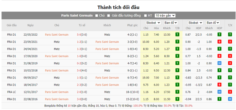 Hai đội đã gặp nhau 28 lần: Metz chỉ thắng 3 lần, PSG thắng 21 lần và 4 trận kết thúc với tỷ số hòa. Ngoài ra, cần lưu ý trận đấu gần nhất hai đội so tài diễn ra vào ngày 21/5/2022 đã kết thúc với tỷ số 5-0 nghiêng về nhà đương kim vô địch nước Pháp.