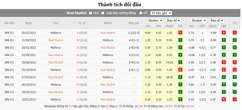 Merengues đã ghi 4 bàn trở lên ở 3 trong 4 trận gần đây tại Bernabeu. Los Blancos đã giành chiến thắng mà giữ sạch lưới ở 5 trận đi kèm 8 trận thắng trong 10 trận gần đây nhất, với 2 trận hòa, còn Mallorca có thành tích thi đấu kém cỏi.