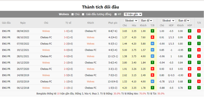 Chelsea đã thực hiện 4,5 quả phạt góc trong 5 trận sân khách gần nhất trước Wolverhampton Wanderers. Wolverhampton Wanderers đã thực hiện dưới 5,5 quả phạt góc ở 6 trên 7 trận gần nhất gặp Chelsea và trong 5 trận gần đây của họ.