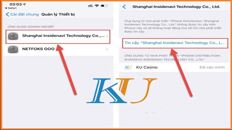 - Bước 4: Sau khi ứng dụng đã được tải xuống thành công, vào Cài Đặt => Click cho phép ứng dụng không rõ nguồn gốc => Tin cậy => Xác nhận.